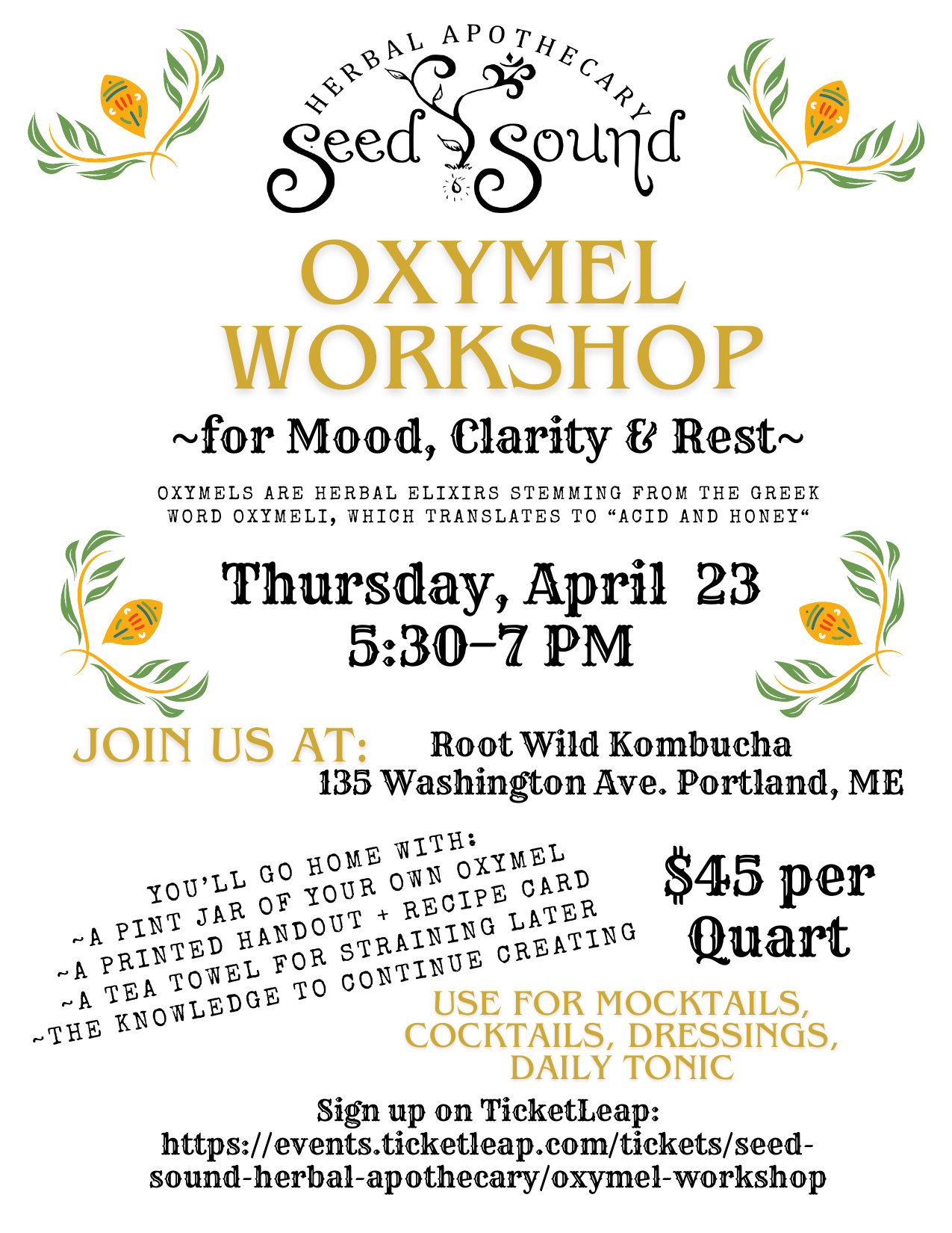 Join us at: Root Wild Kombucha, 135 Washington Ave · Portland, ME
